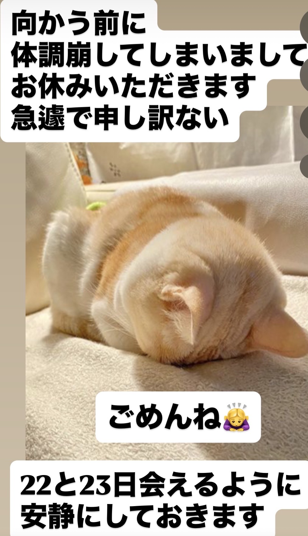 また後ほど体調戻り次第